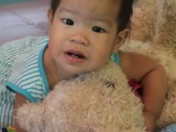 น้องตุ๊กตุ่นเป็นลูกสาวคนเล็กของห้อง Baby อายุน้องประมาณ 3 เดือนเศษ น้องเป็นสาวหน้าตาคม ตัวเล็กๆน่ารัก ร้องเสียงดังเพราะชอบให้คุณครูอุ้ม โดยเฉพาะเวลาน้องง่วงนอน คุณครูพยายามปรับวิธีการนอนของน้องให้น้องสามารถนอนกับที่นอนเองได้ ซึ่งต้องใช้เวลาซักระยะ น้องอยู่โรงเรียนน้องจะนอนนาน เสียงดังก็ไม่ตื่น ค่อยๆปรับตัวดีขึ้น คุณครู |